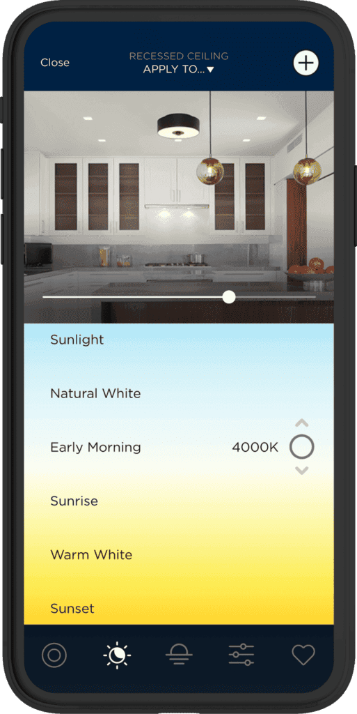 Der Kunde muss nur die gewünschten Ton-, Bild-, Licht- oder Temperaturumgebungen definieren, und zwar auf überraschend einfache Weise: Fügen Sie einfach die verschiedenen Geräte hinzu, über die wir verfügen – Streaming-Plattformen, Musik, Tontechnik, Beleuchtung usw. – und konfigurieren Sie unser System mit der Option Savant Instant in nur wenigen Minuten.